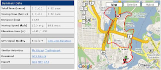 I remember thinking how well it was going. In every race, there is a point where you know you will meet your goal or not. This point was between Bank Street and Bronson for me. I realized that unless something major happened, I would beat my PB. The only question then was by how much and whether or not I could come in under 1:40. So I kept pushing and pushing, knowing that whatever happened, I would have done my best and left nothing on the course. The usual lull that I experience in a half marathon at about km 16 didn't really bother me this time around. I enjoyed the sights at Dow's lake (briefly) and then I was on the final stretch to the finish. My marathon experience of last year probably prepared me for longer distances, making a half more enjoyable...